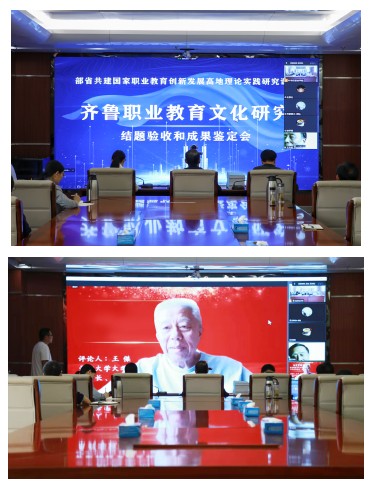 《齊魯職業(yè)教育文化研究》項(xiàng)目是由棗莊職業(yè)學(xué)院牽頭,聯(lián)合天津職業(yè)技術(shù)師范大學(xué)、威海海洋職業(yè)學(xué)院共同完成。此次會(huì)議采取線上線下結(jié)合的方式召開,分為成果公開報(bào)告會(huì)、結(jié)題驗(yàn)收和成果鑒定會(huì)兩個(gè)階段進(jìn)行。副院長張藍(lán)兮主持會(huì)議。
